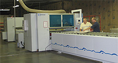 Homag's NFL 21 Double-End Tenoner is a longitudinal feed machine that can process all four sides of a piece in two passes, making it very productive. We can size, square, profile, groove and rabbet with this machine. |