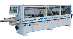 This edgebander is equipped with program control, high-frequency motors, and can band up to 1/2" material thickness with feed speeds up to 46 ft/min. |